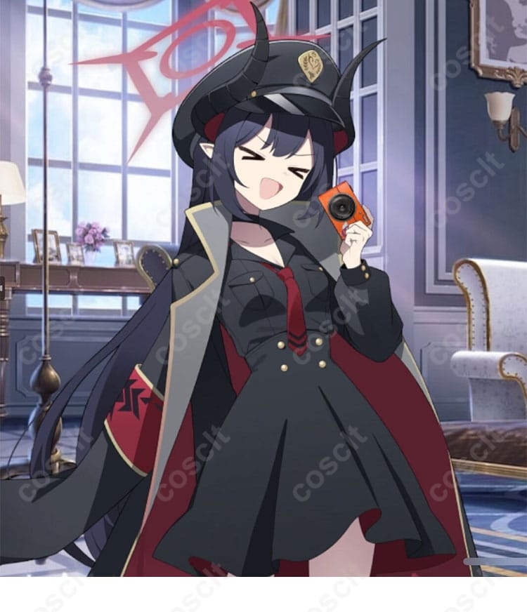 シルエットはきちんと感がありつつ、重く見えすぎないのがポイント。コートとネクタイで知的な雰囲気を出しながら、帽子や腕章までそろうので、撮影でもイベントでも世界観をまとめやすい仕上がりです。ゲヘナ学園らしい落ち着いたムードが出しやすく、初心者さんにも合わせやすいデザインです。
