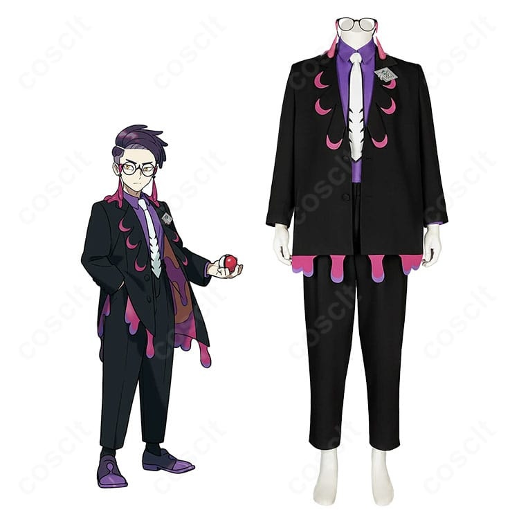 眼鏡とネクタイが印象的なカラスバは、落ち着いた雰囲気の中に鋭さを感じさせるキャラクター。『ポケモンレジェンズZ-A』らしい近未来感や、少しミステリアスな空気をコスプレで表現したい人にぴったりです。こちらの衣装は、シャツ・ズボン・ネクタイ・メガネのセット内容で、全体のバランスが取りやすく、イベントでも写真でも世界観を出しやすい仕上がり。クール系、学園系、リンクコーデにもなじみやすく、コミケや撮影会、ハロウィン仮装まで幅広く活躍します。
